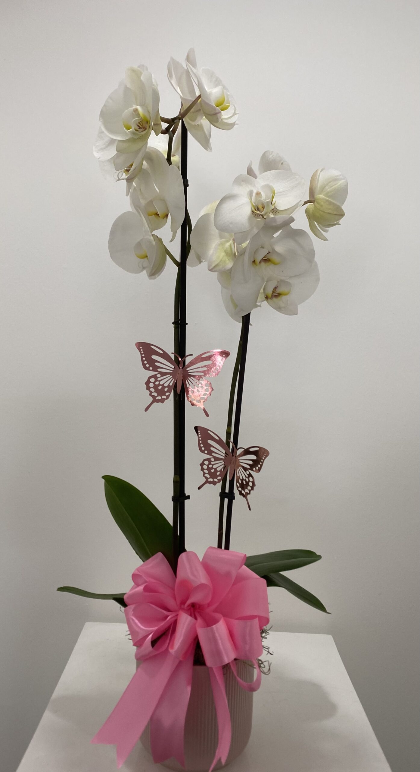 Sé el primero en valorar “Planta de Orquidea Blanca arreglada en una base”