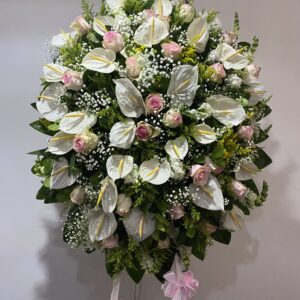 Corona de Anturium y Rosas Importadas Rosadas